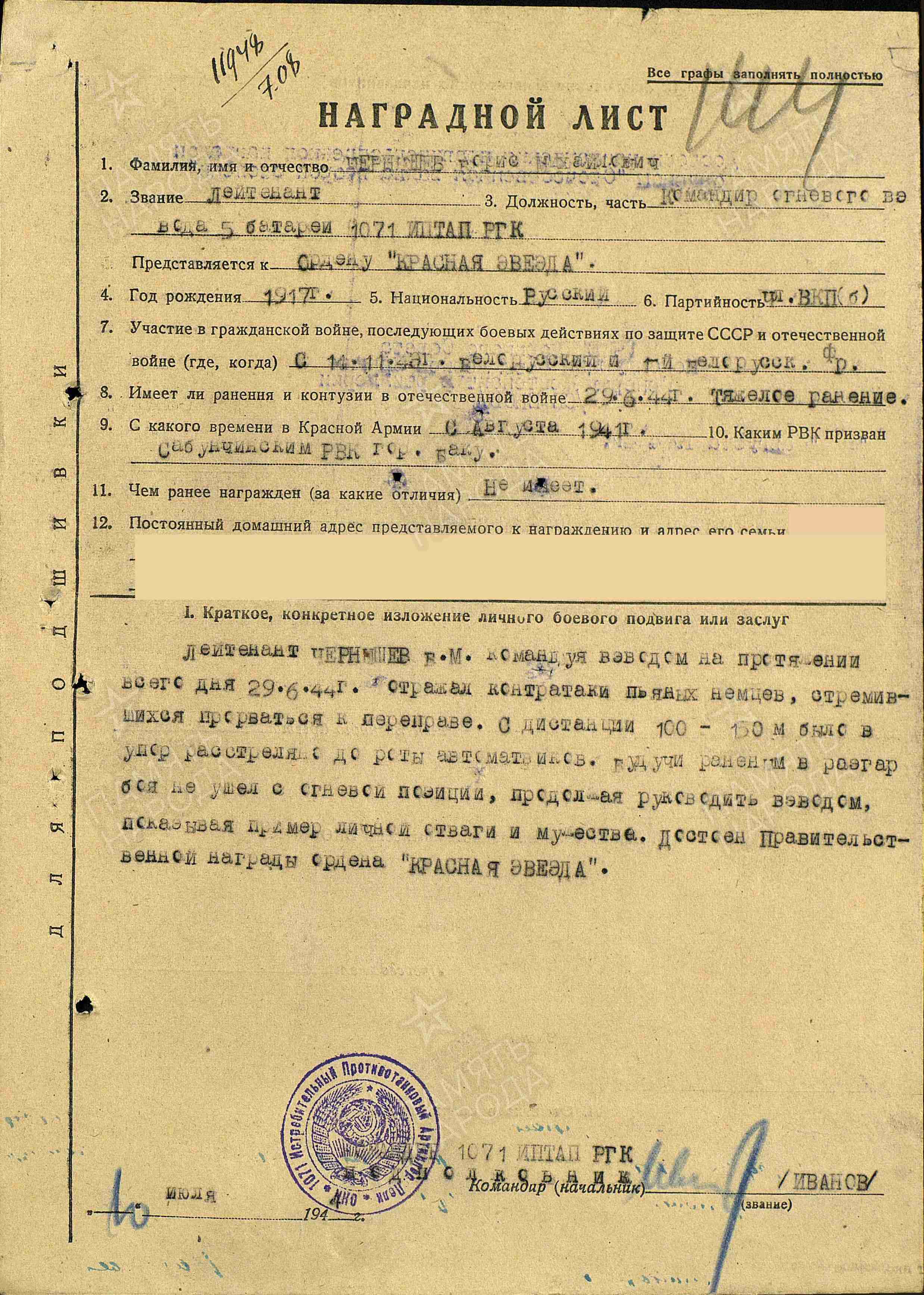 И вот вновь оживают кусты. Немцы стремятся приблизиться к пушке. Группами, с автоматами в руках бегут перебежками. Чернышёв с пулемётом, а также огневики вместе с Огурковым в упор расстреливают озверевших фашистов. Тяжело ранен в ногу лейтенант Чернышёв, но продолжает руководить боем…